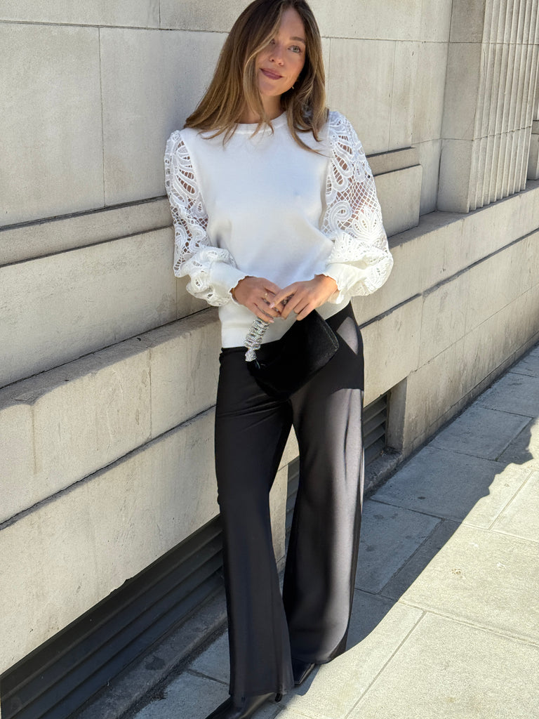 These Cabochon Trousers offer a refined take on a wardrobe essential. Crafted in a classic straight fit, their timeless black hue ensures versatility and effortless pairing with any ensemble. Ideal for professional settings or elegant casual wear, they combine comfort with understated sophistication for a polished, confident look.