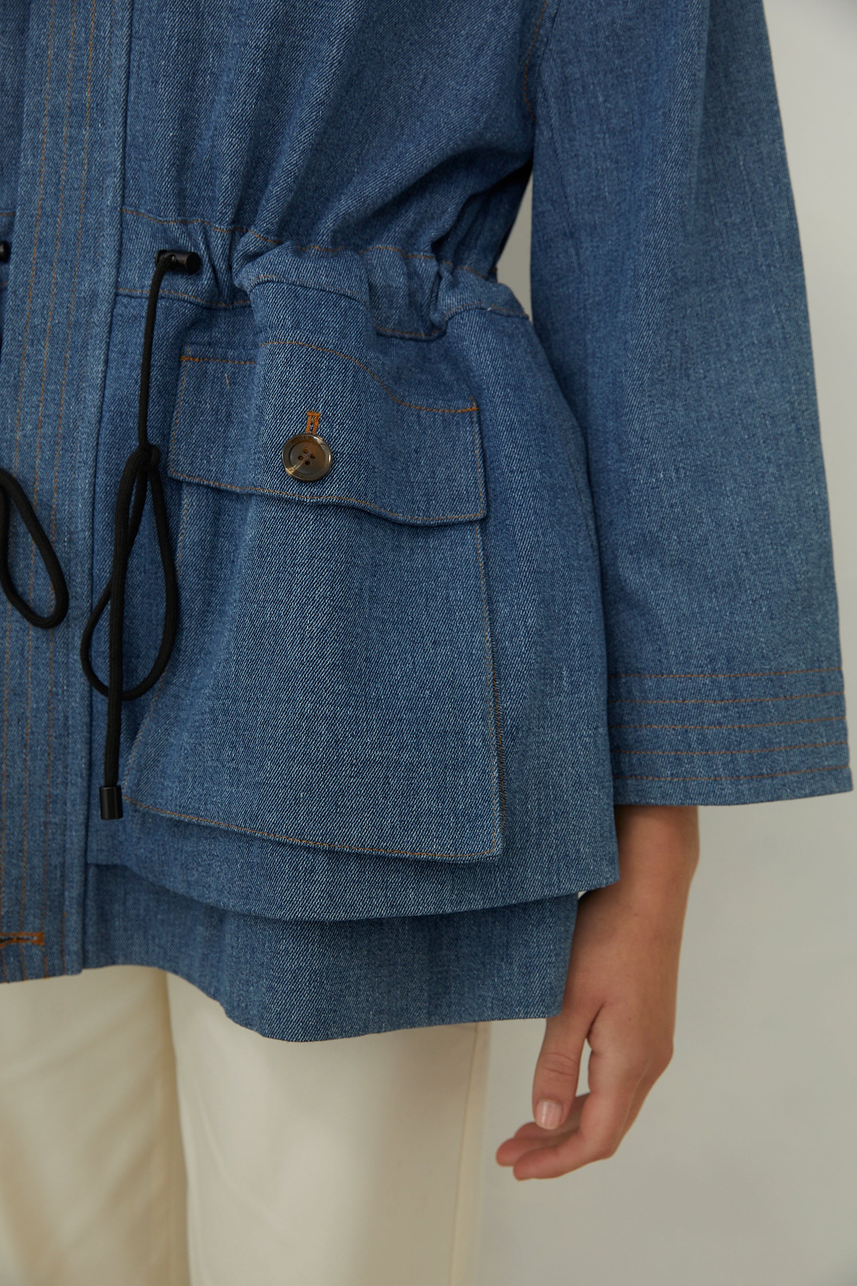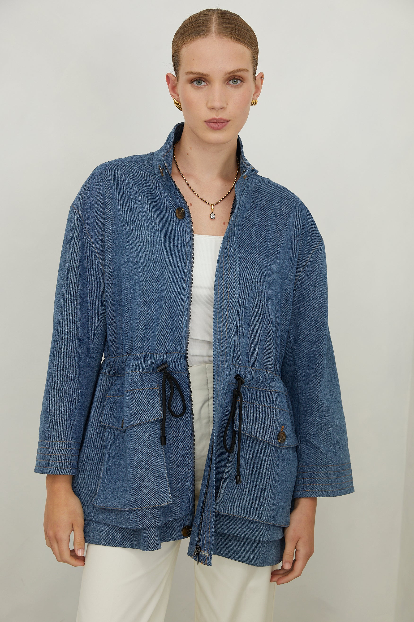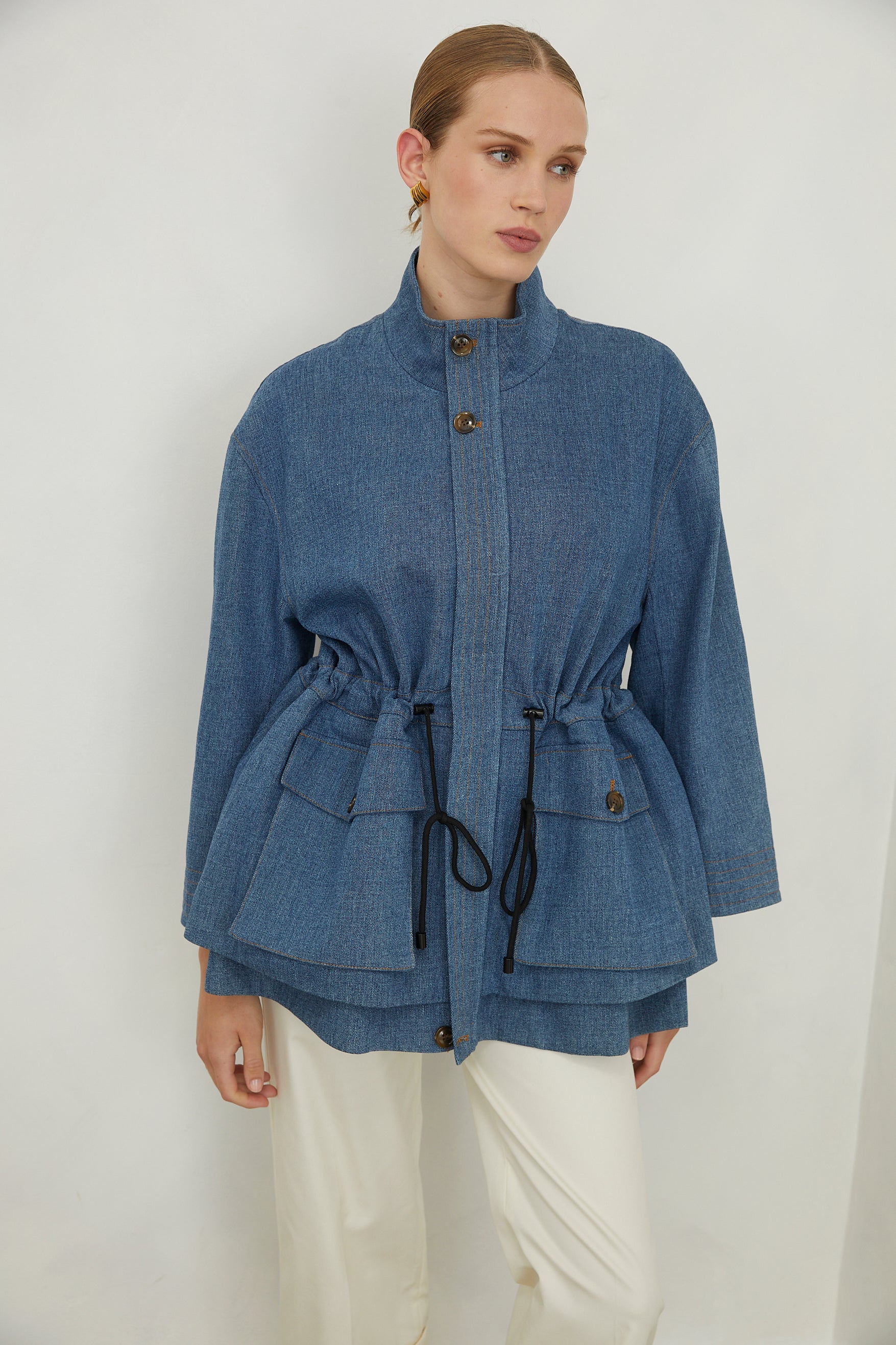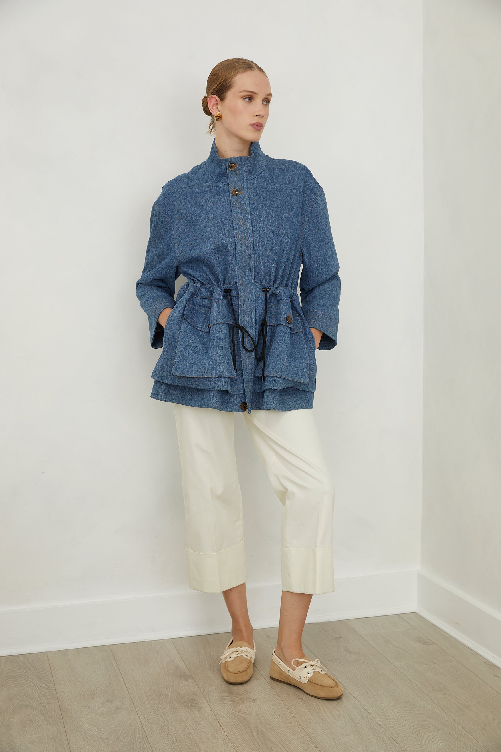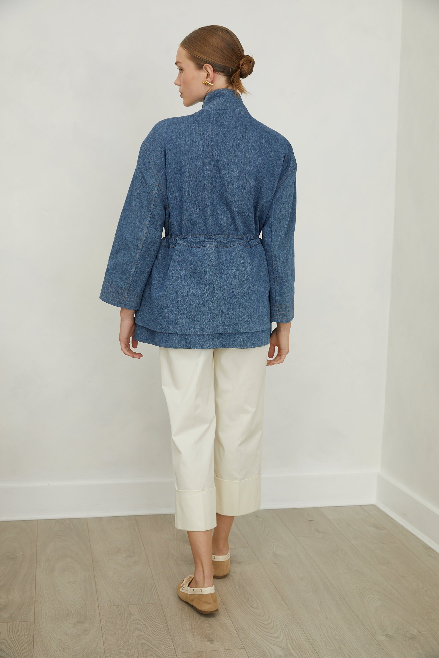 The LYRIS JACKET combines timeless denim craftsmanship with contemporary design. Constructed from pure 100% cotton, this piece offers durability and breathability for year-round wear. Generous pockets provide practical storage without compromising the silhouette, while the adjustable tie waist allows for a customized fit that flatters various body types. A versatile layer that transitions effortlessly from casual to refined styling.
