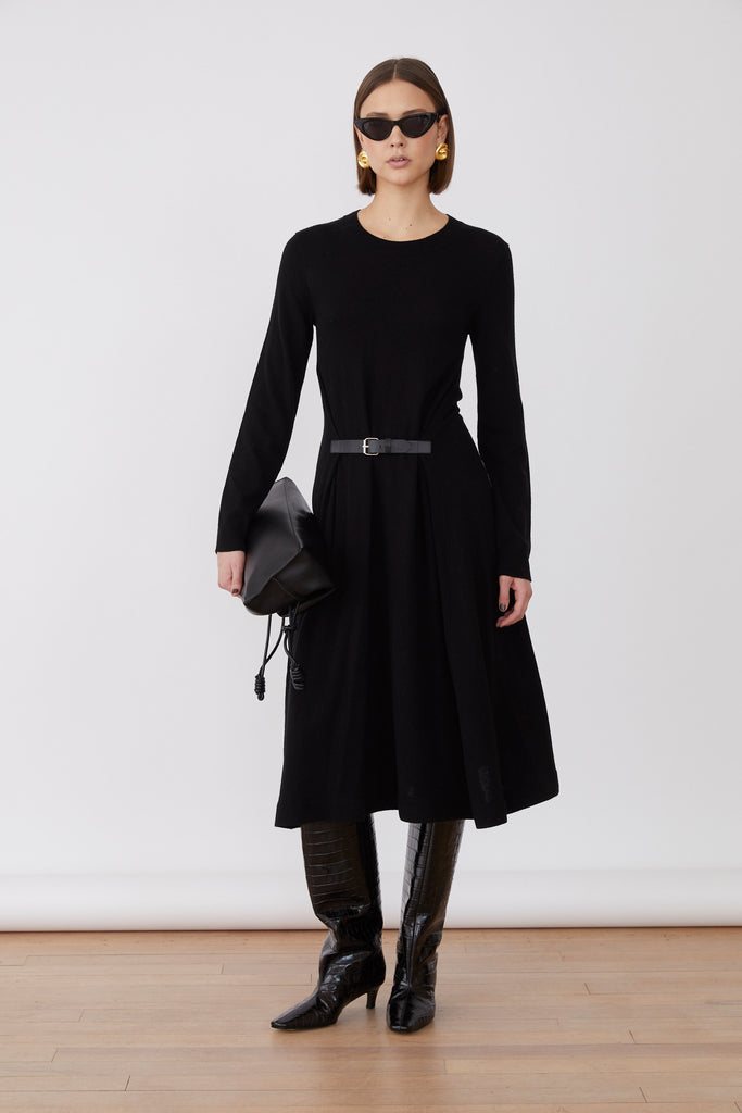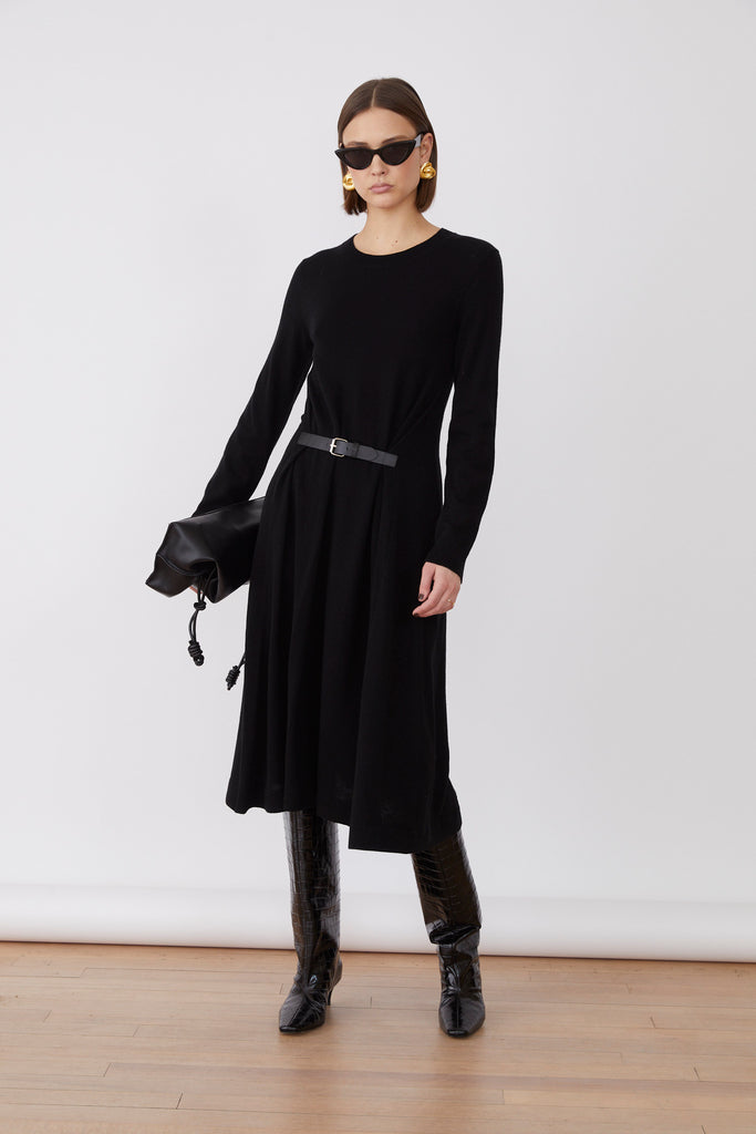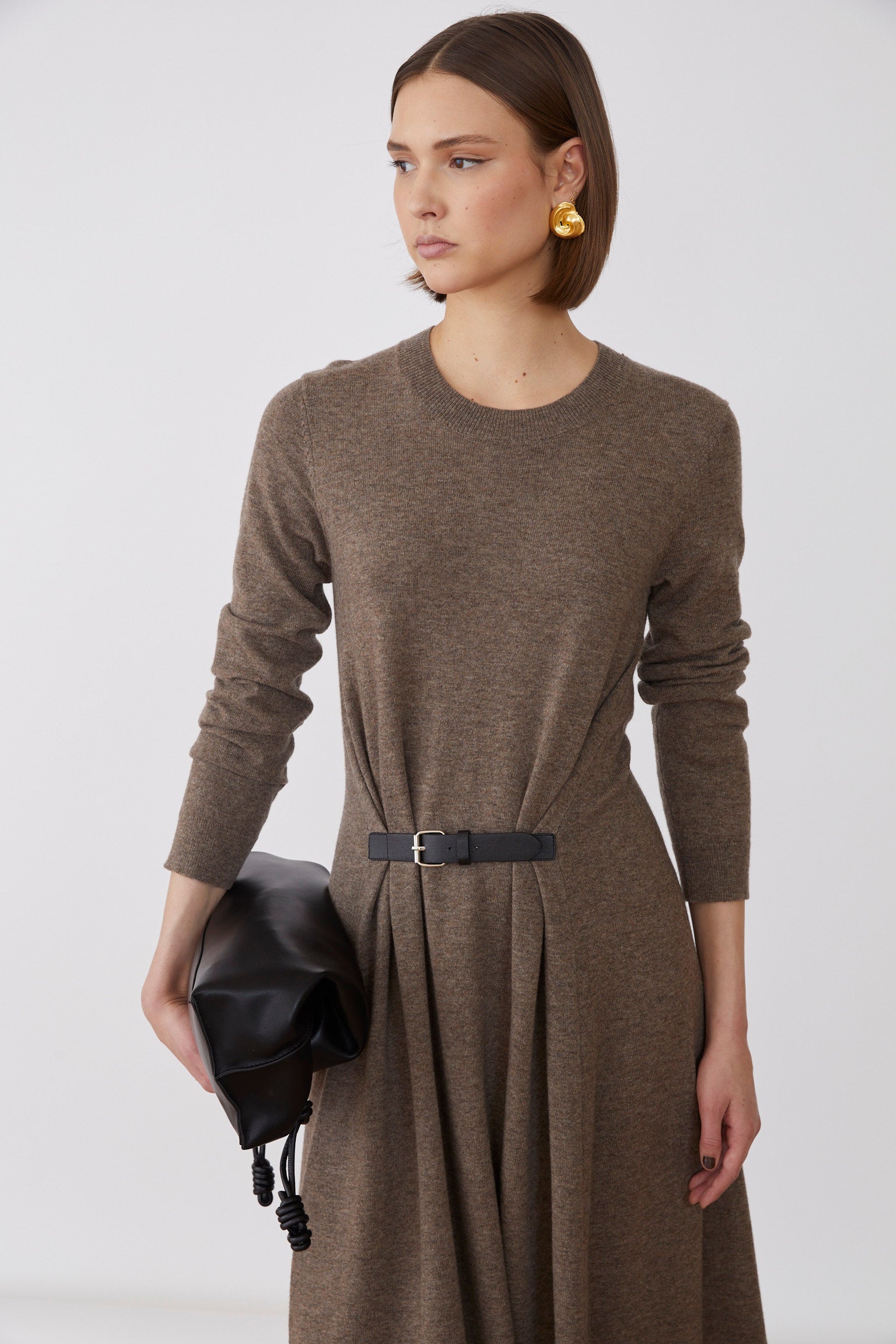 The Chiltern Knitted Dress offers a sophisticated silhouette with its long sleeves and a belt detail at the front waist that elegantly cinches to accentuate your figure. Crafted to combine comfort and style, this dress is perfect for refined occasions where subtle tailoring makes a statement.
