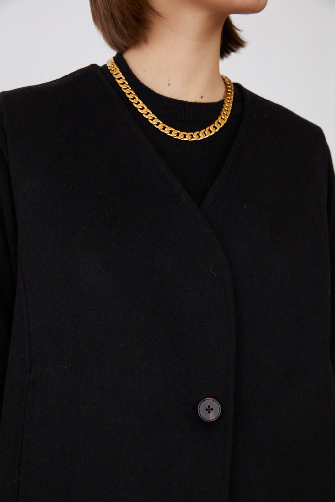 Crafted from 50% wool, the Graig Vest is an elegant layering essential. Its refined fabric offers warmth and subtle texture, making it the perfect versatile piece to elevate your wardrobe while providing extra comfort and insulation.