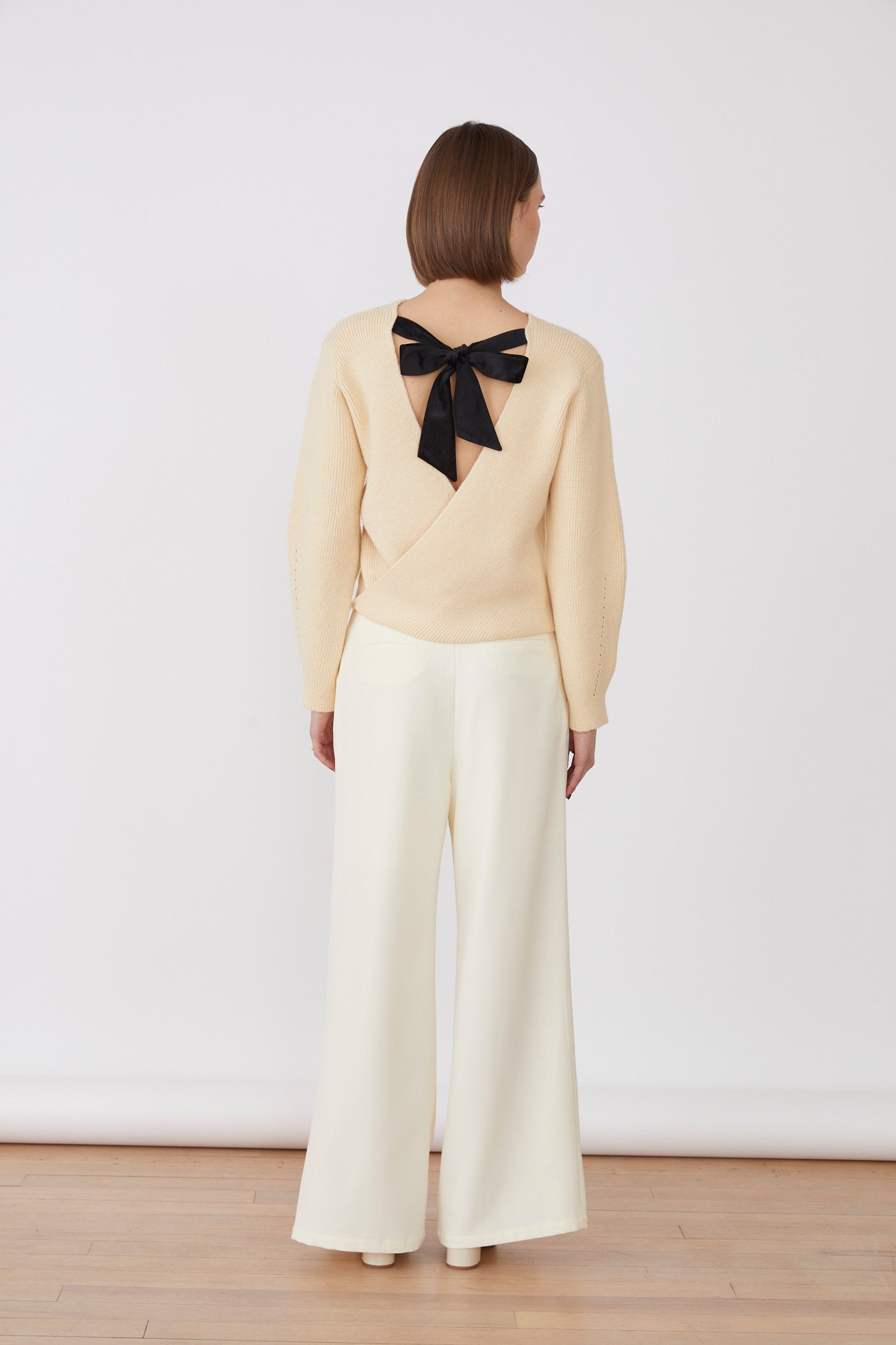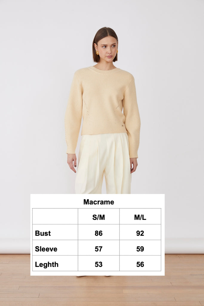 Elevate your essentials with the Macrame Jumper in cream, crafted for effortless style and comfort. Featuring a delicate tie at the back, it adds a refined touch to a classic silhouette. The super soft fabric ensures all-day wearability, making this jumper a versatile and sophisticated staple in your wardrobe.