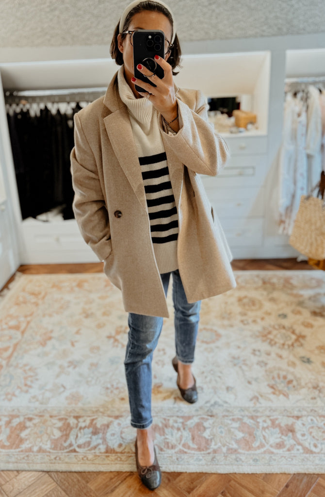 The JACKIE BLAZER is a versatile and classic addition to any wardrobe. Its long design and two buttons offer a timeless look that can dress up any style. Made from high-quality materials, this blazer is a must-have for a polished and sophisticated appearance.