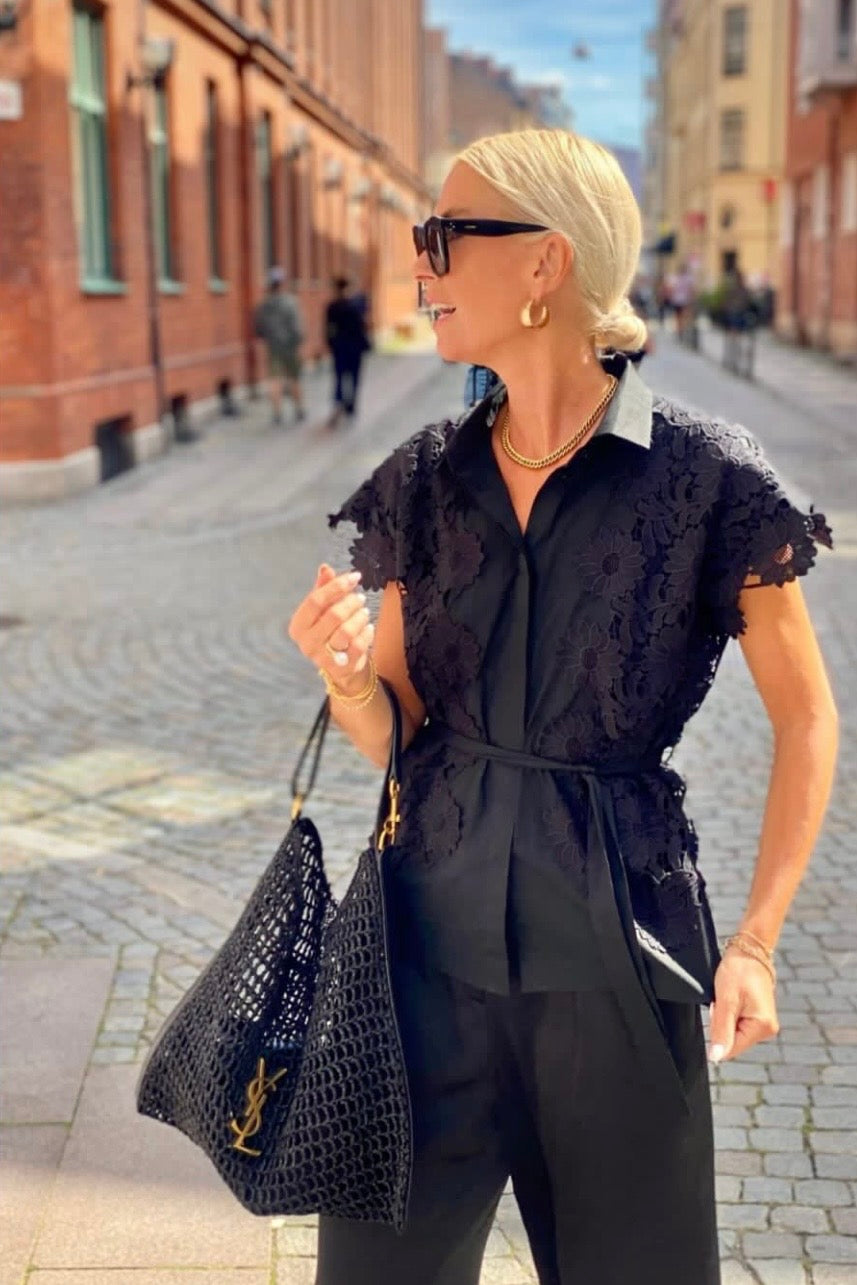 FINAL SALE. NON REFUNDABLE Expertly crafted using 100% cotton, the Rigel blouse in black is perfect for any occasion. Its embroidered short sleeves and classic collar add a touch of elegance, while the tie waist creates a flattering silhouette. Feel confident and stylish in this versatile piece.