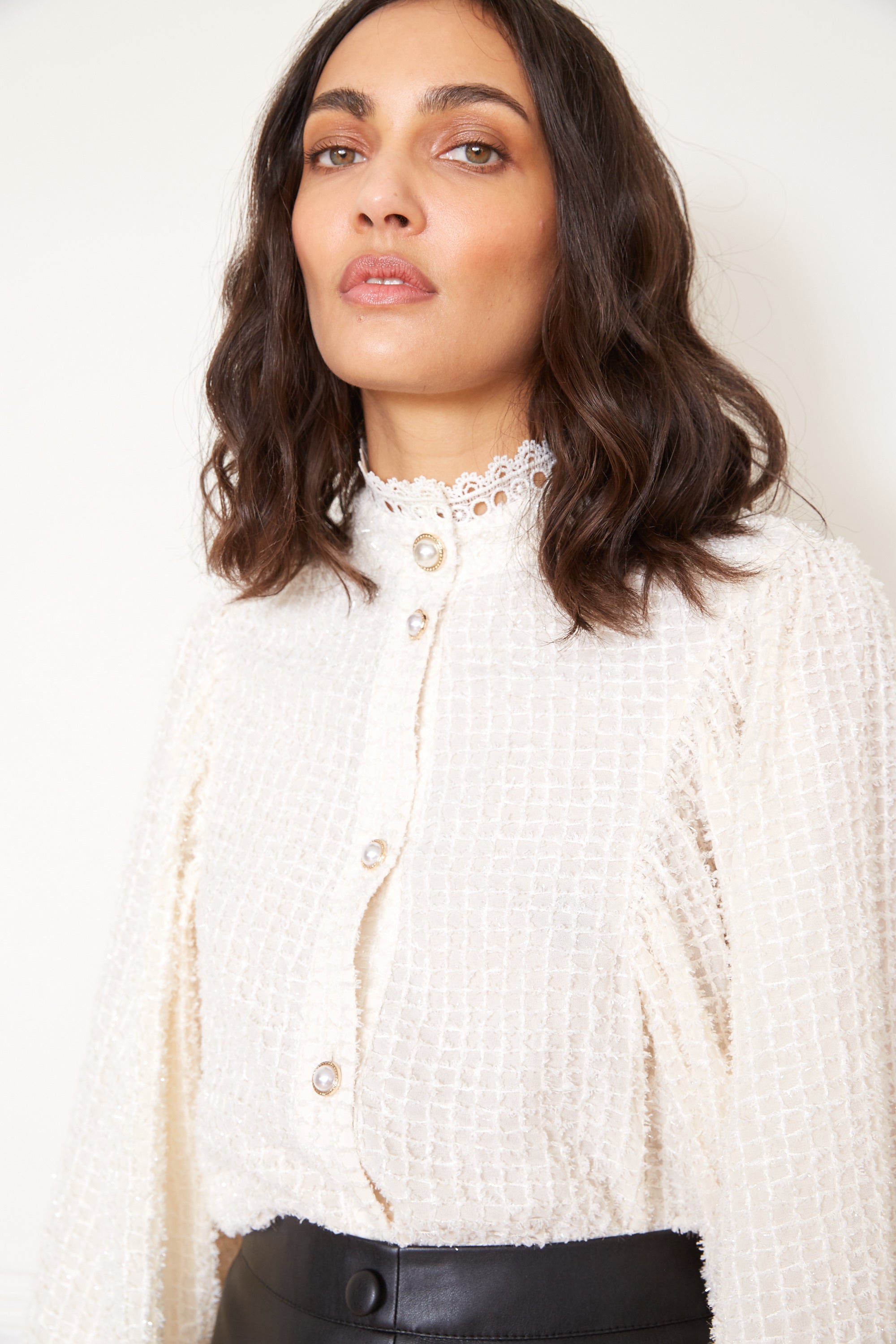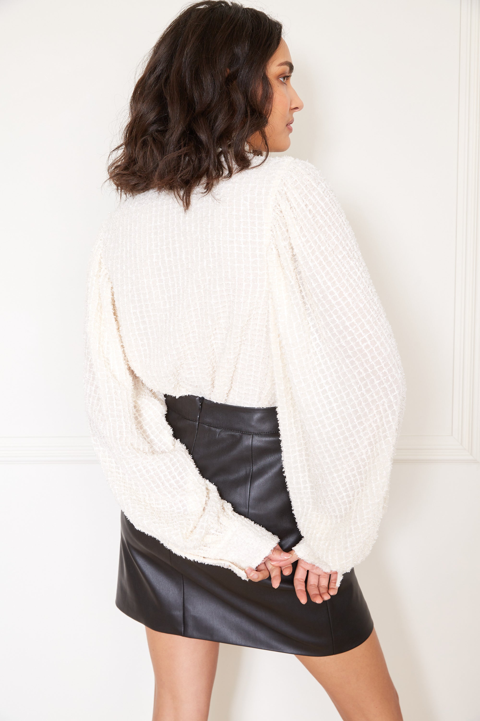 Semira Blouse is now available in black, with the signature balloon sleeves. Crafted with premium waffle fabric and featuring shimmy hues, this top is the perfect addition to any fashion-forward wardrobe, with its unique texture and eye-catching design.