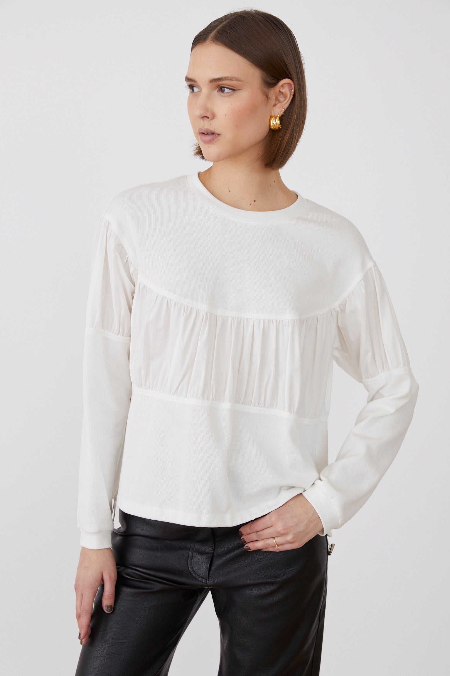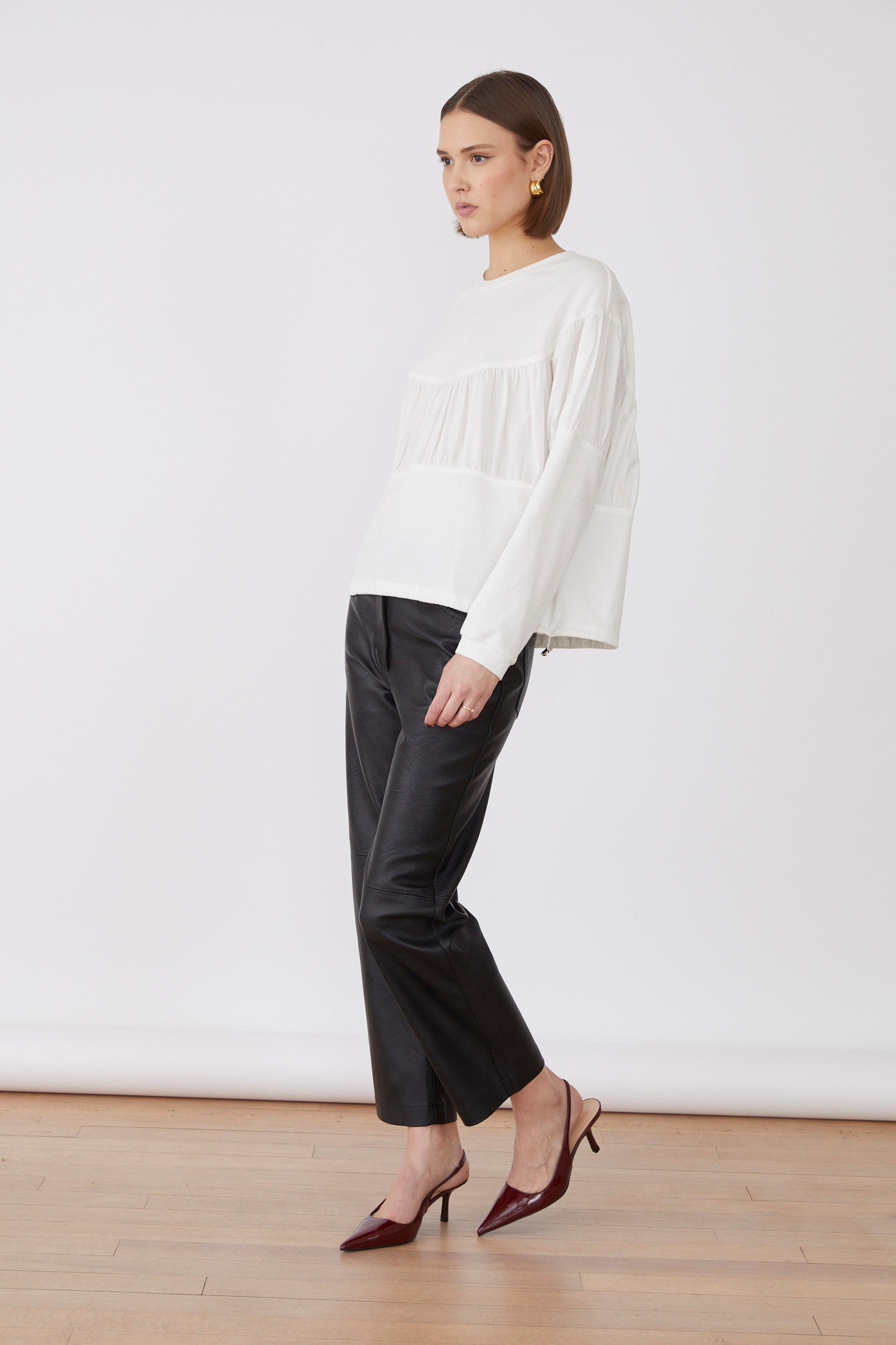 The Roza Blouse Black combines elegance with contemporary design through its mixed materials and delicate long sleeves. Featuring voluminous detailing, this blouse adds a refined yet fashion-forward silhouette, perfect for elevating any sophisticated wardrobe.