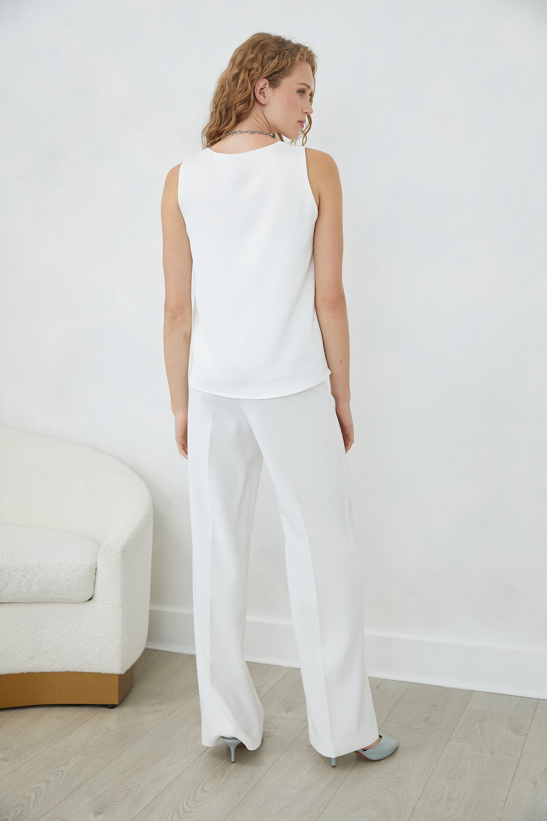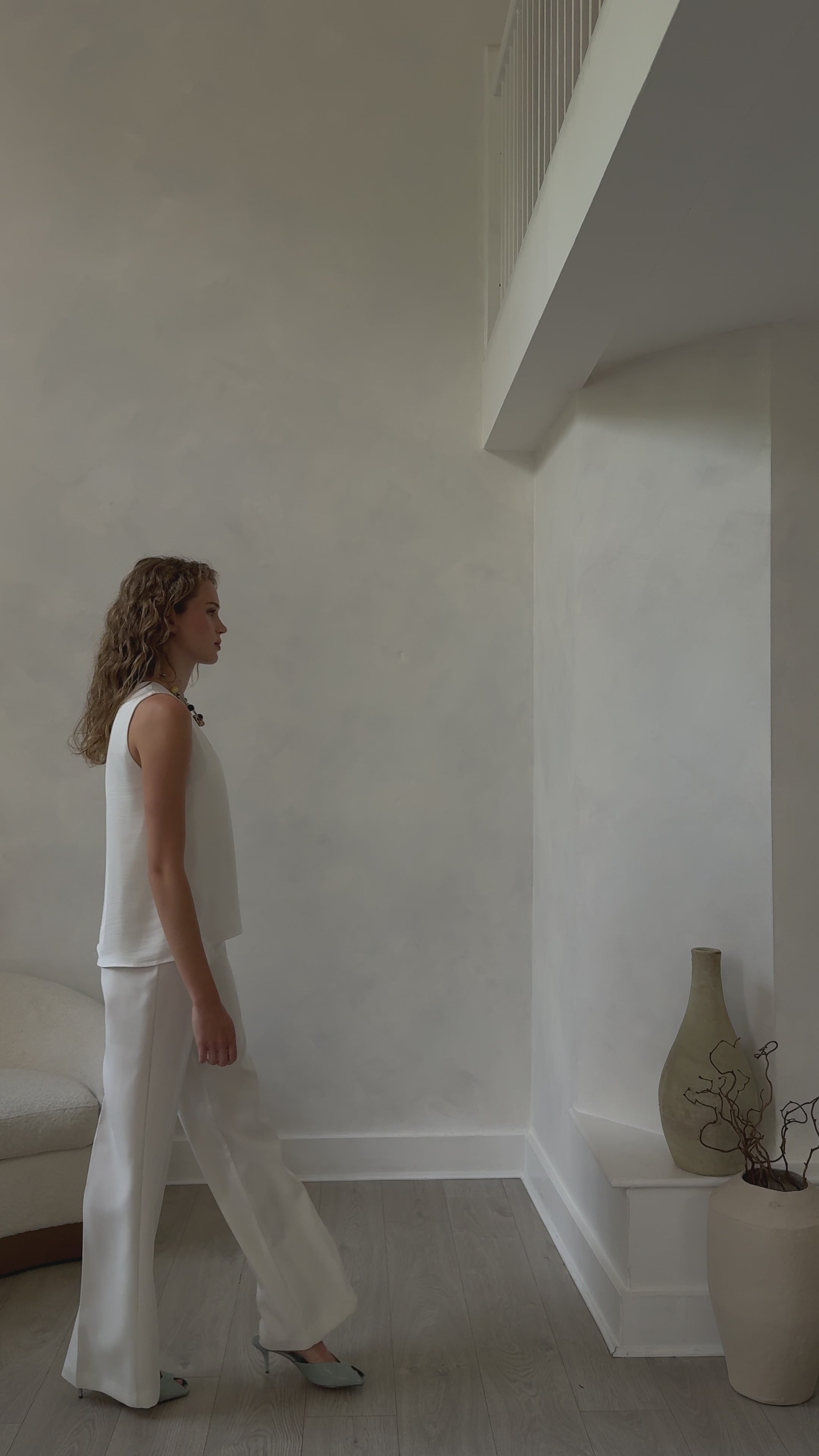 Crisp white trousers that anchor any wardrobe. The TEYANA TROUSERS deliver effortless versatility—equally at home with a silk camisole for evening or layered under a knit for refined everyday wear. A timeless essential that elevates every outfit with understated polish and clean lines.